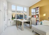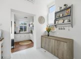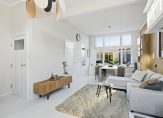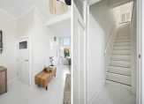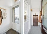 Als je het karakteristieke straatbeeld hebt bewonderd, is het tijd om deze hoekwoning van binnen te bekijken. In de verrassend lichte hal is genoeg plek voor een kapstok en een mooie (lade)kast, zonder dat de ruimte vol oogt.