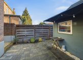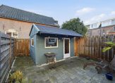 Via de keuken loop je de tuin in, gesitueerd op het zonnige zuiden. Een groot deel is bestraat, waardoor er weinig onderhoud is, en aan beide kanten staan houten schuttingen. Een achterom is er ook, net als een ruime (fietsen)berging.