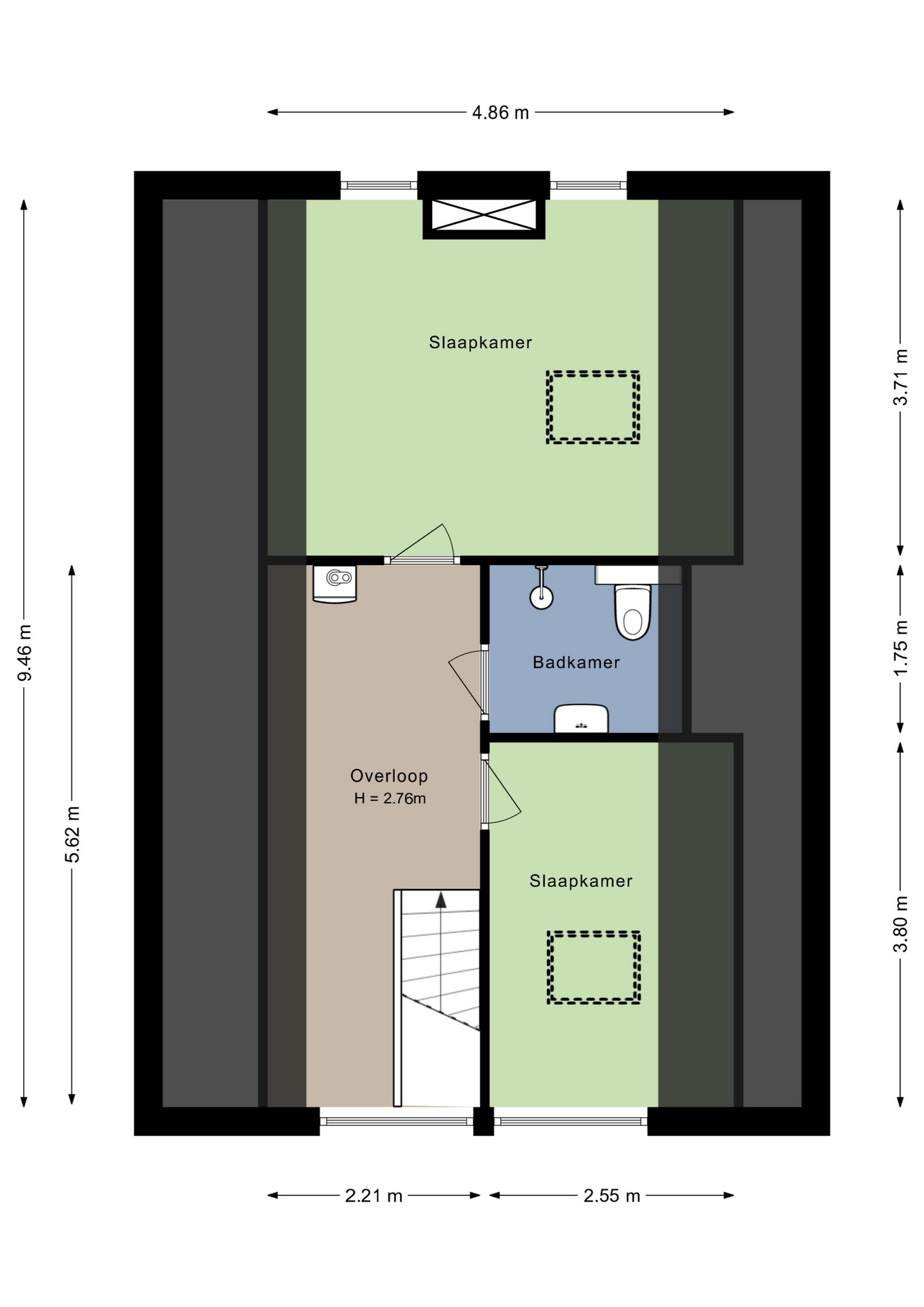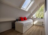 Zijn drie slaapkamers niet genoeg? Op de tweede verdieping zijn nog twee ruime slaapkamers, waarmee het totaal op vijf komt. Beide slaapkamers zijn, net als de overloop, heel licht en er ligt laminaat op de vloer. De kamer aan de voorzijde is ingericht als logeerkamer, en de kamer aan de achterzijde als werkkamer. In deze kamer hangt een airco-unit, net als in de woonkamer.