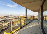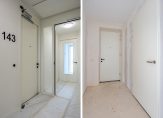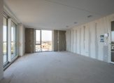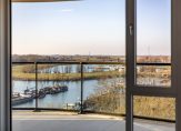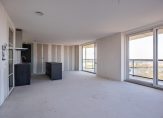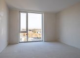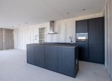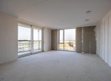 Vlak naast de lift is de entree van dit fraaie, splinternieuwe appartement. De royale, lange hal biedt toegang tot alle ruimtes, waaronder de woonkamer met open keuken. Met een oppervlakte van circa 45 m2 heeft u de beschikking over een aangename leefruimte, met grote ramen tot vloerhoogte en een schuifpui naar het terras. Hier geniet u volop van het uitzicht, bij het zit- en het eetgedeelte, en de lichtinval.