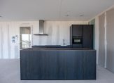 Er is een moderne, luxe keuken geplaatst met een groot eiland en een lange wandopstelling, dat ruimte biedt aan het kook- en het spoelgedeelte. De keuken biedt veel bergruimte en de inductie kookplaat, afzuigkap, vaatwasser, Quooker, combi-oven en koel-/vriescombinatie zijn ingebouwd. De apparatuur is van Siemens, met uitzondering van de heetwaterkraan.