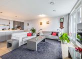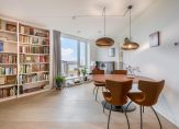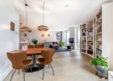 Grote ramen bij het zit- en het eetgedeelte zorgen voor veel lichtinval in de royale woonkamer, die een geheel vormt met de keuken. Het uitzicht is om in te lijsten en er is genoeg plek voor een royaal zit- en eetgedeelte.