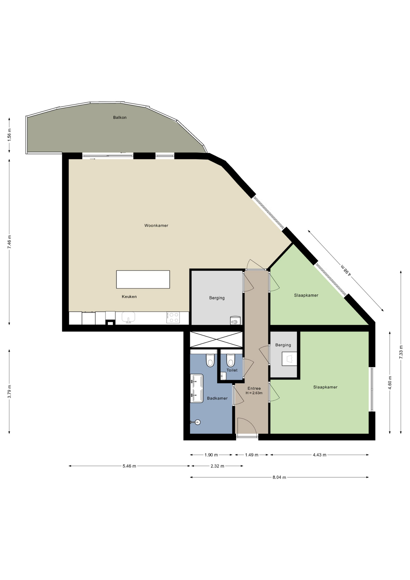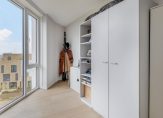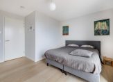 Vanuit de hal is er toegang tot twee slaapkamers en een 2e berging. De master bedroom heeft een mooie L-vorm en de tweede, speels vormgegeven slaapkamer is geschikt als werk-/ en/of kleedruimte. Beide kamers hebben, net als de woonkamer, ramen tot vloerhoogte voor een optimale ruimtebeleving.