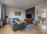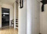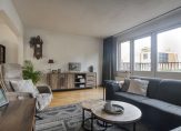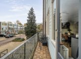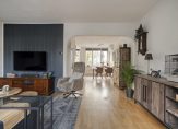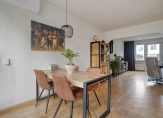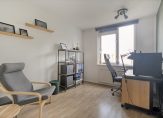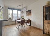 De lichte woonkamer bevindt zich aan de achterzijde en biedt een prettig uitzicht over de tuin. Dankzij de grote raampartijen geniet je hier van veel natuurlijk licht. De woonkamer grenst aan een ruim dakterras. Aan de voorzijde vinden we de keuken met ruimte voor een eethoek. De keuken is voorzien van diverse inbouwapparatuur en heeft voldoende kastruimte. Daarnaast geeft de keuken toegang tot het balkon aan de voorzijde van de woning.