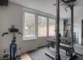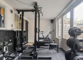 Via de entree kom je in de hal met toegang tot het toilet en een ruime kamer aan de achterzijde, ideaal als werk-, hobby- of logeerkamer. Ook vind je op deze verdieping een praktische inpandige garage, die tevens gebruikt kan worden als extra opslagruimte of eventueel als kantoor aan huis. Deze garage geeft toegang tot de home-gym welk toegang tot de tuin geeft.