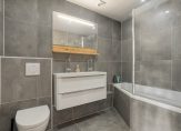 Op de bovenste verdieping bevinden zich drie slaapkamers van goed formaat en een moderne badkamer met ligbad/douche, wastafel en toilet.