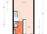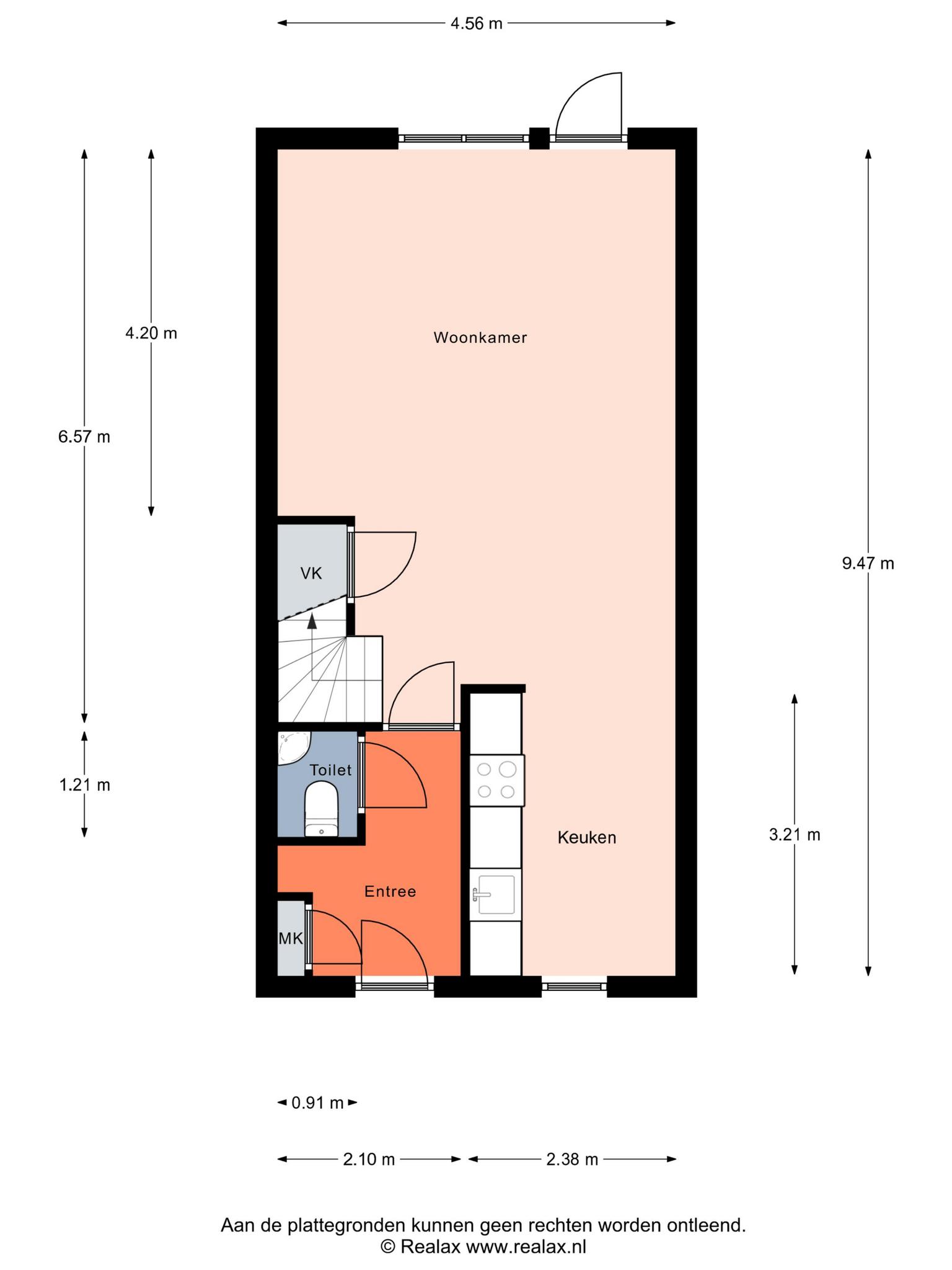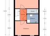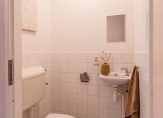 Begane grond: entree/ hal – meterkast – toilet met fonteintje – woonkamer met trapopgang – provisiekast – open keuken.