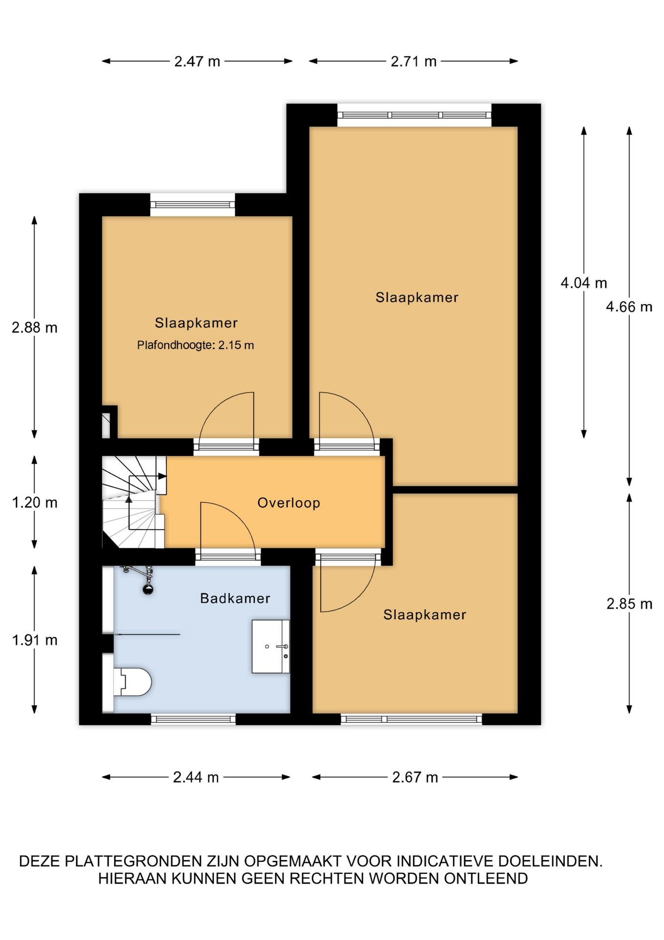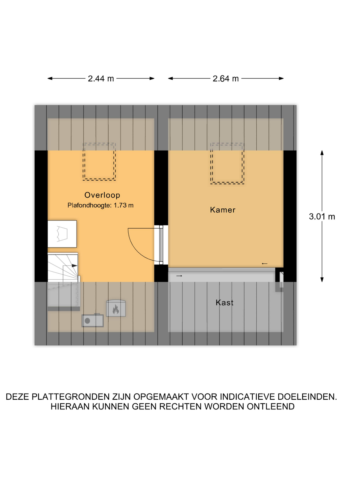 Drie slaapkamers en kamer (met beperkte stahoogte) op de 2e verdieping