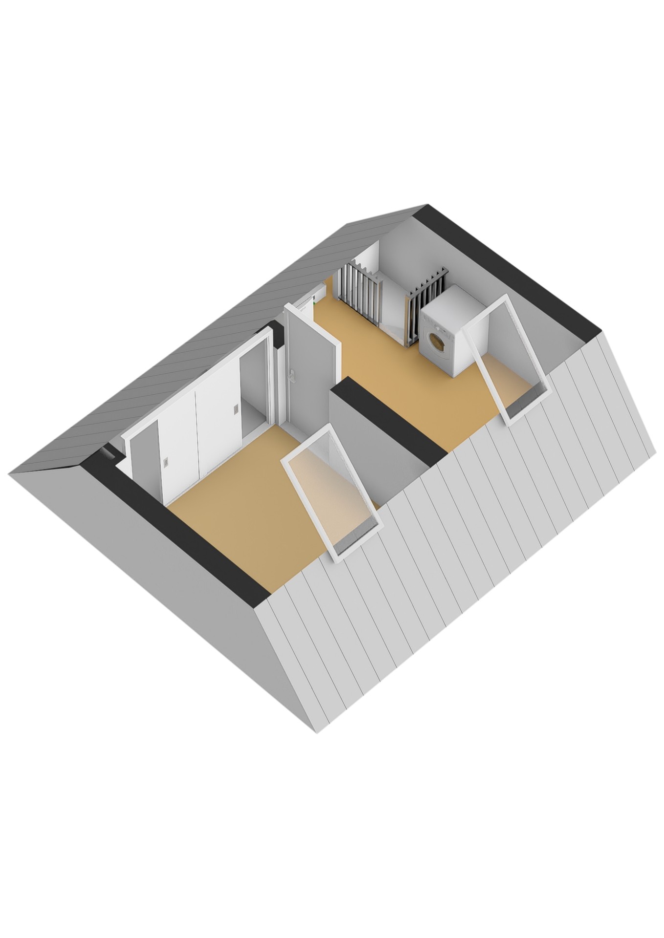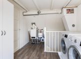 2e Verdieping: vaste trap naar de 2e verdieping (met beperkte stahoogte) – voorzolder met wasmachine aansluiting en bergruimte – kamer met dakraam.
