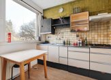 Riante, lichte woonkamer aan de achterzijde. De eenvoudige keuken aan de voorzijde van de woning is toe aan modernisering, maar biedt alle ruimte om er jouw ideale kookplek van te maken. Tevens is deze etage voorzien van een toilet en bijkeuken. Aan zowel de voor- als achterzijde heeft de woning een balkon, zo kun je altijd van de zon genieten.
