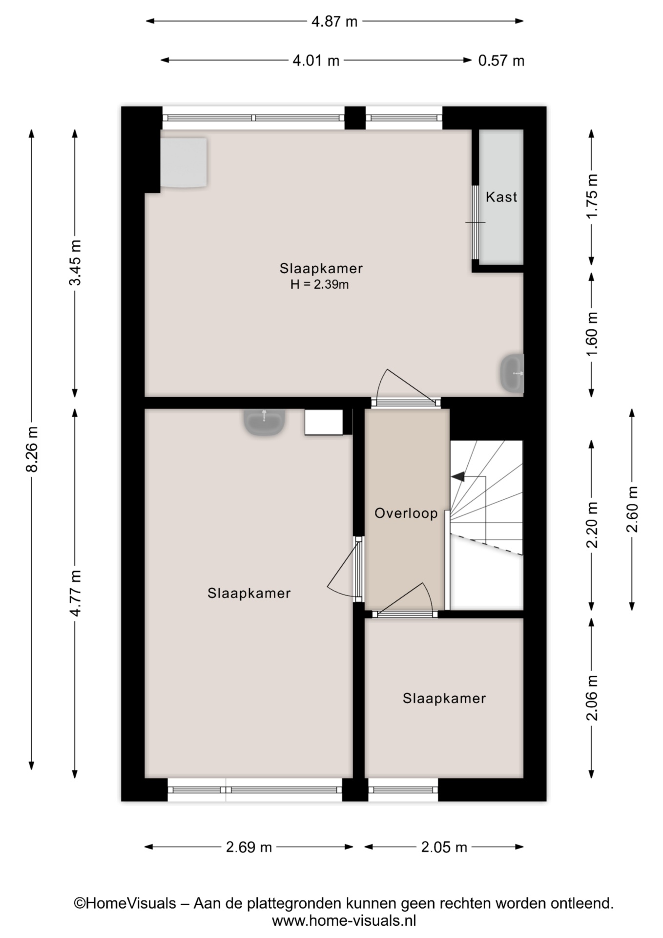 Overloop en drie slaapkamers, twee van deze slaapkamers hebben een wastafel.