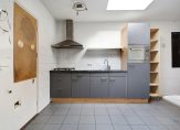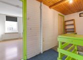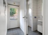 In de uitbouw van de woning vinden we de keuken met ingebouwde koelkast, gaskookplaat en magnetron, eetkamer, hal, badkamer met inloopdouche en wastafel.