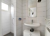 Overloop met wastafel, twee slaapkamers. De slaapkamer aan de achterzijde van de woning geeft middels een deur toegang tot het dak van de uitbouw.