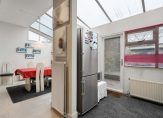 vanuit de keuken en de kamer is er deur naar de besloten tuin met schuurtje en achteringang.