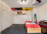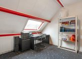 een kleine, leuke kinderkamer aan de voorzijde en een grote badkamer aan de achterzijde met ligbad, douche, toilet en wastafelmeubel.