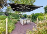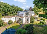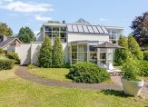 bieden wij aan een onder architectuur gebouwd tijdloze Villa met garage en carport en rondom parkachtige besloten tuin met oprijlaan, terrassen en borders en een verrassend vergezicht over het glooiende landschap.