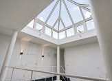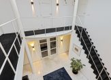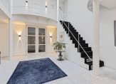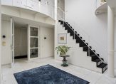 Via de oprijlaan en de fraaie entree met voorhal, toilet en garderobe en een atrium met veel licht en een open vide bevindt u zich in de woning.