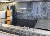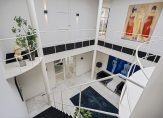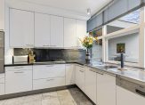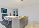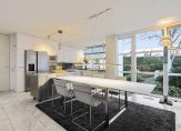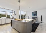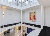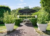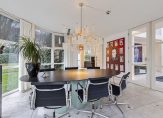 Het atrium is het kloppend hart van de woning met toegang tot de diverse vleugels van de woning met een uitgebouwde serre en toegang tot de tuin, een sfeervolle woonkeuken met lichte inrichting en alle denkbare apparatuur en een ruime bijkeukens met was- en droogmachine en ruimte voor een koeling, en proviand , alsmede een technische ruimte met een ketel voor de luchtverwarming, een warmtepomp en een combi c.v. ketel.