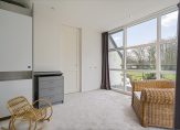 Aansluitend bevindt zich een werkkamer/zit-slaapkamer met eigen entree, pantry en douche/toilet