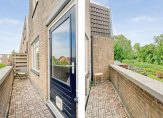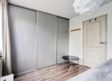 Overloop met toegang tot twee ruime slaapkamers, een luxe badkamer en een praktische inloopkast. De royale hoofdslaapkamer aan de achterzijde biedt toegang tot een zonnig balkon op het zuidwesten, met fraai uitzicht op het achterliggende groen en de waterpartij. De moderne badkamer beschikt over een inloopdouche met rainshower, wastafelmeubel en een tweede toilet.