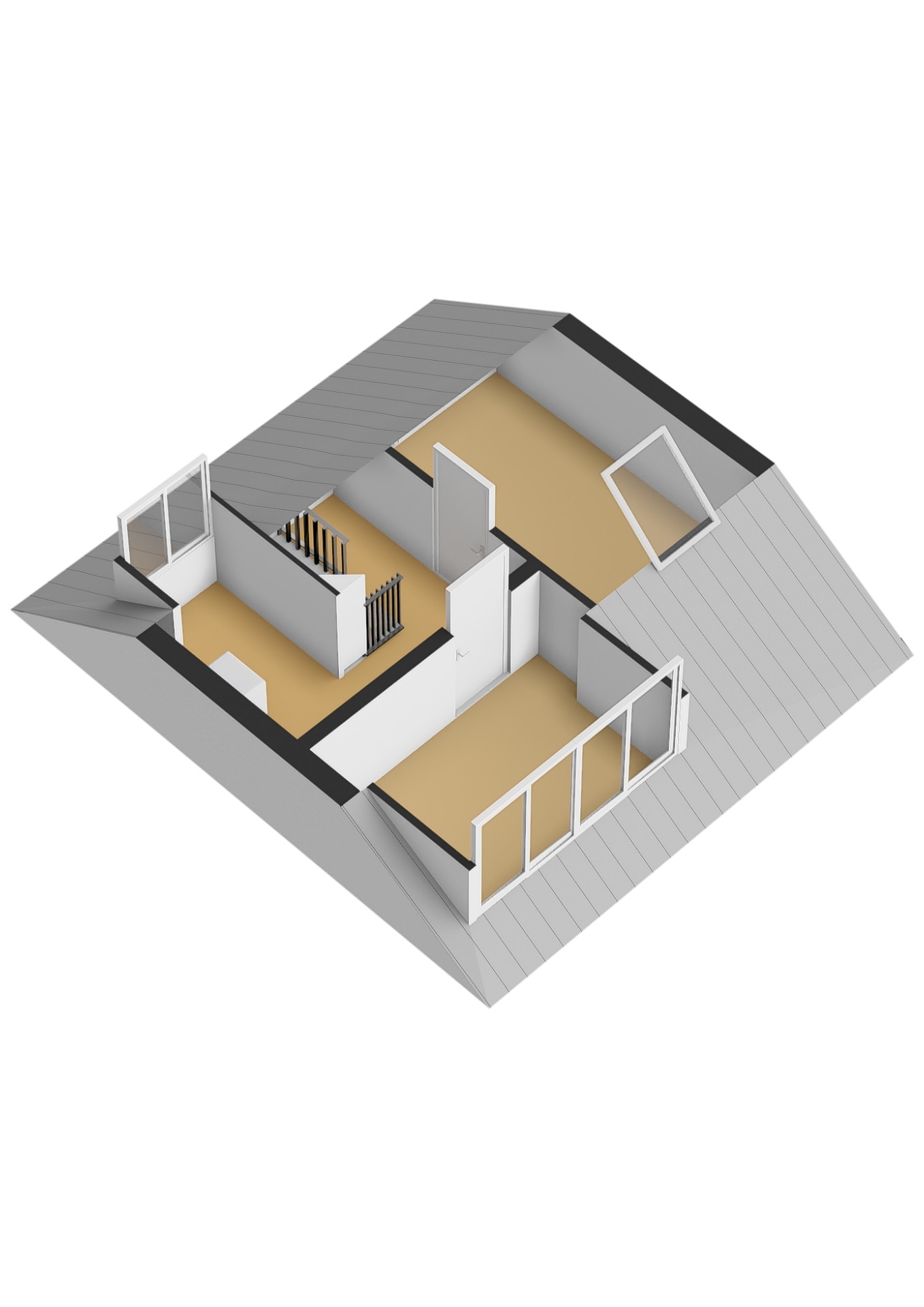 2e Verdieping: overloop met voorzolder met dakkapel en opstelling van de CV-combiketel en ruimte voor de wasmachine – twee slaapkamers, beiden voorzien van dakkapel en bergruimte.